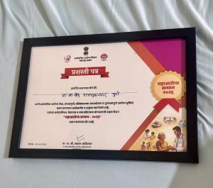 यावेळी मा. गजानन पाटील (भाप्रसे) मुख्य कार्यकारी अधिकारी जिल्हा परिषद पुणे डॉ.भगवान पवार, उपसंचालक, आरोग्य सेवा परिमंडळ पुणे डॉ. रामचंद्र हंकारे जिल्हा आरोग्य अधिकारी, जिल्हा परिषद पुणे यांच्या मार्गदर्शनाखाली एबीडियम ई – सुश्रुत मध्ये उत्कृष्ट काम केल्याने खेड तालुक्यातील राज्यस्तरीय प्रथम क्रमांक प्राथमिक आरोग्य केंद्र राजगुरुनगर येथील वैद्यकीय अधिकारी डॉ. इंदिरा पारखे व अधिकारी व कर्मचारी तसेच द्वितीय क्रमांक प्राथमिक आरोग्य केंद्र कडूस येथील वैद्यकीय अधिकारी डॉ. मिलिंद दौंडकर व अधिकारी व कर्मचारी यांना आरोग्य रत्न पुरस्कार देऊन गौरविण्यात आले. त्याच प्रमाणे तालुका आरोग्य अधिकारी कार्यालय, पंचायत समिती खेड यांच्याकडून हार्दिक अभिनंदन व पुढील कार्यास हार्दिक शुभेच्छा देण्यात आल्या.तसेच आज ज्येष्ठ नागरिक संघ व